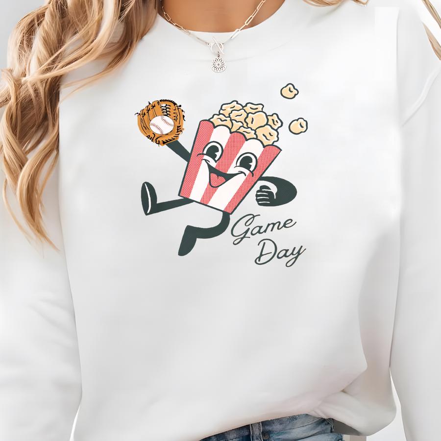 Game Day Baseball Sweatshirt, Baseball Sweatshirt, Baseball Mom Sweatshirt, Retro Baseball Shirt, Retro Baseball Mom Shirt, Popcorn Shirt Sweatshirt