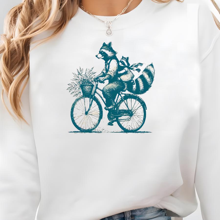 Funny Raccoon Bicycle T-shirt: Quirky Animal Lover Tee Sweatshirt