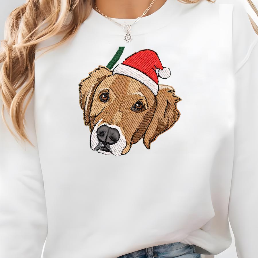 Custom Pet Portrait Hoodie, Personalized Dog Santa Hat Y Sweatshirt, Dog Mom Gift, Christmas Gifts, Dog Lover Tee Sweatshirt