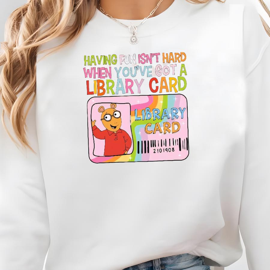 Having Fun Isn’t Hard Library Card Shirt, Funny Cartoon Tee, Childhood Graphic T-shirt Sweatshirt