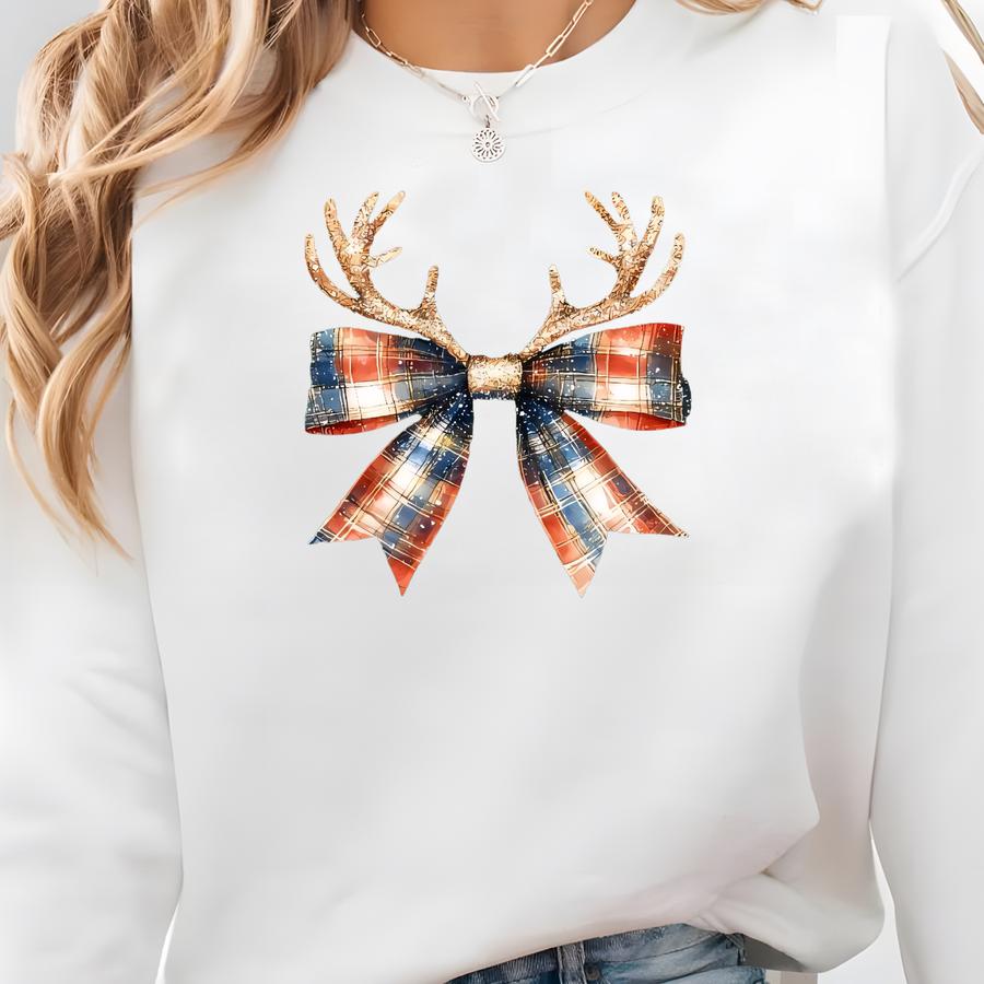 Reindeer Bow Sweatshirt, Reindeer Christmas Sweatshirt, Cute Bow Christmas Sweatshirt, Christmas Bow Sweatshirt, Xmas Gift, Gift For Woman Sweatshirt