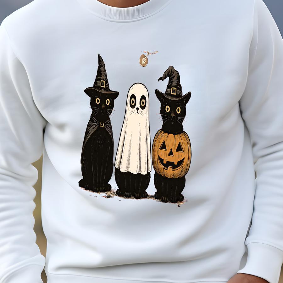 Halloween Cat Shirt: Spooky Ghost, Witch Kitty Sweatshirt