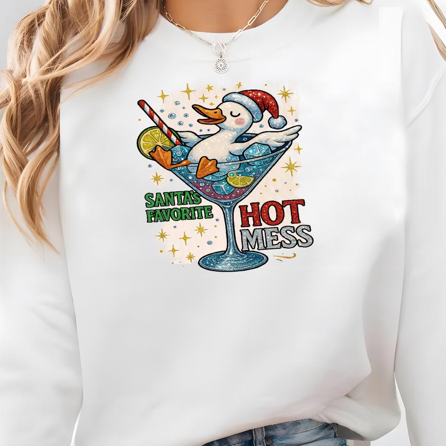 Funny Christmas Duck Sweatshirt ,santa's Favorite Hot Mess Festive Top, Christmas Martini Sweatshirt, Christmas Party Outfit, Gift For Mom, Sweatshirt