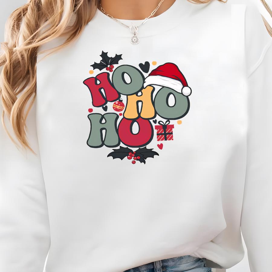 Ho Ho Ho Christmas Shirt: Retro Santa Hat Xmas Holiday Cotton Tee Sweatshirt