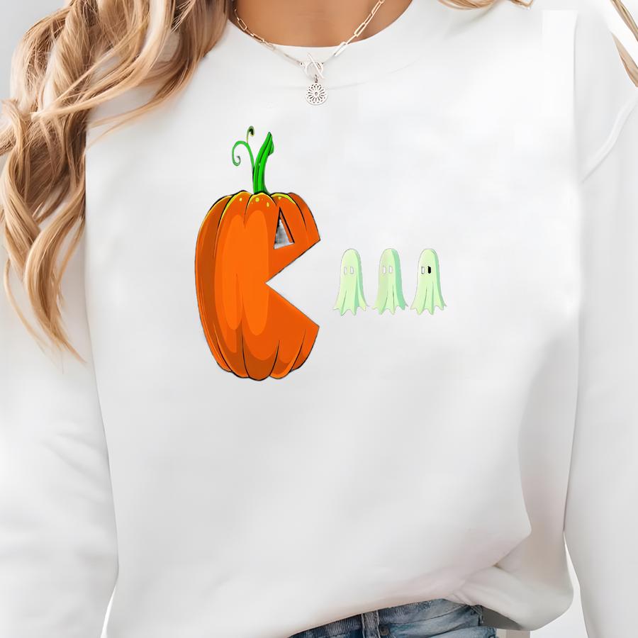 Pac-man Pumpkin Ghost T-shirt: Funny Retro Gamer Halloween Tee Sweatshirt