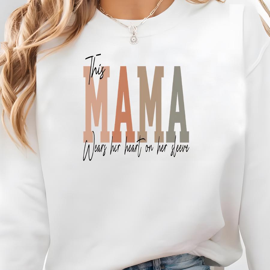 Custom This Mama Wears Her Heart On Her Sve Sweatshirt,personalized Mama Hoodie With Kids Names,mom Sweater,gift For Mom,mothers Day Gift Sweatshirt