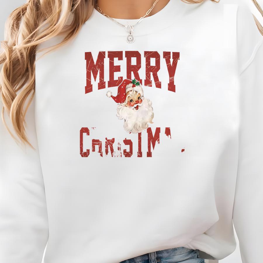 Merry Christmas Vintage Santa Distressed Sweatshirt, Retro Christmas Shirt, Family Christmas Shirt, Christmas Party Shirt Sweatshirt