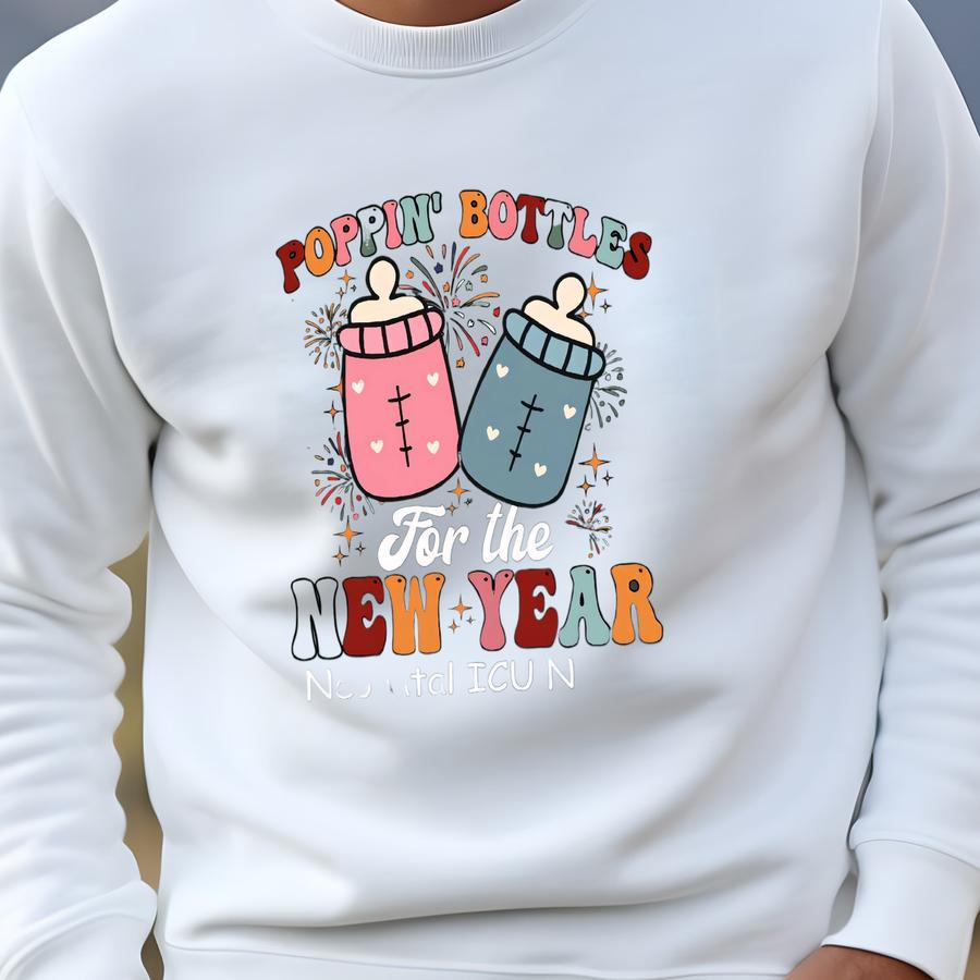 Poppin’ Bottles For The New Year Baby Comfort Color Shirt, Cute Holiday Tee, Nicu Family Celebration Sweatshirt