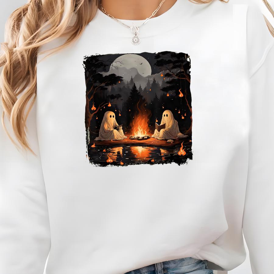Ghost Campfire Hoodie: Spooky Halloween Pullover, Cozy Fall Night Gift Sweatshirt