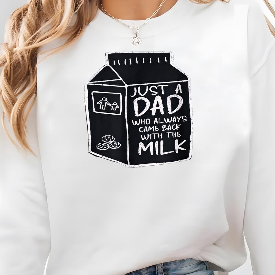 Just A Dad Who Always Came Back With The Milk Shirt, Funny Dad Joke Sweatshirt, Classic Dad Humor Gift Hoodie Sweatshirt
