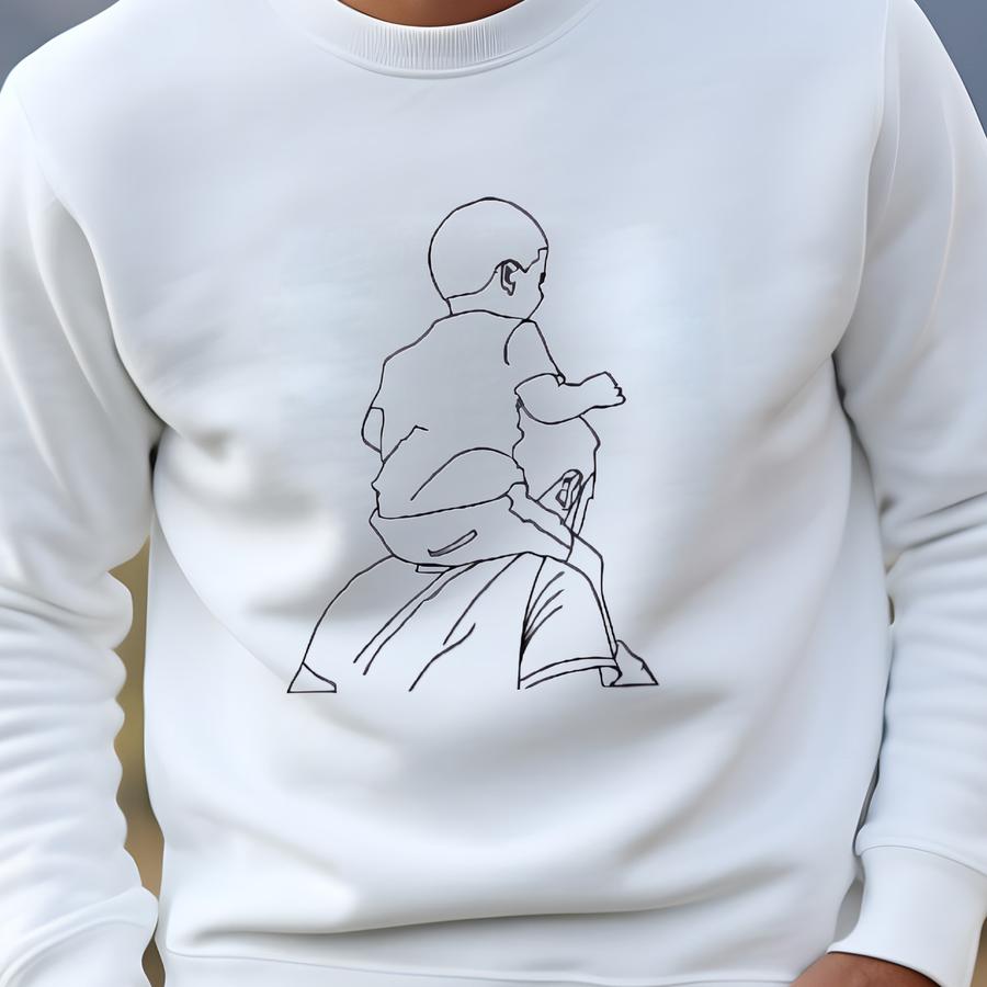Dad Custom Portrait Photo Tee Shirt, Personalized Kids Picture Outline Sweatshirt, Customize Fathers Day Surprise, Dad Outline T-shirt Gifts Sweatshirt