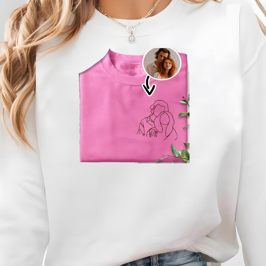 Custom Portrait Photo Tee Shirt, Personalized Picture Outline Sweatshirt, Customized Boyfriend Birthday Surprise, Girlfriend Outline T-shirt Sweatshirt