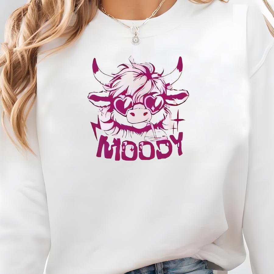 Highland Cow Just A Little Moody Shirts, Heifer Shirt, Aesthetic Preppy Clothes, Sarcastic Snarky Western Cow Shirt, Bp Sweatshirt