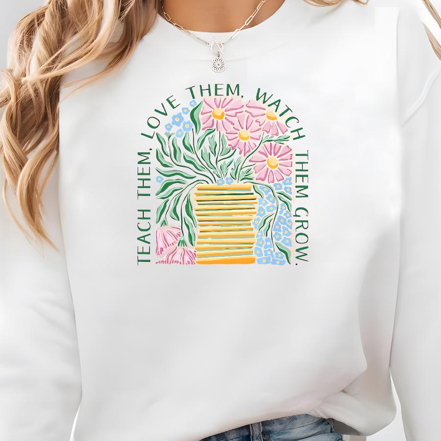 Funny Teacher Sweatshirts, Floral Teacher Crewneck, Back To School Shirts, Preschool Teacher Gifts, Teach Them Love Them Watch Them Grow Sweatshirt