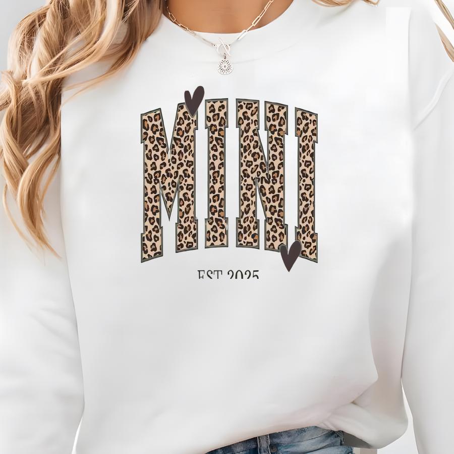 Custom Leopard Mini Sweatshirt, Personalized Mini Sweatshirt With Kid Name On Sve, Cute Gift For Mom, Mini Est 2025 Hoodie Sweatshirt