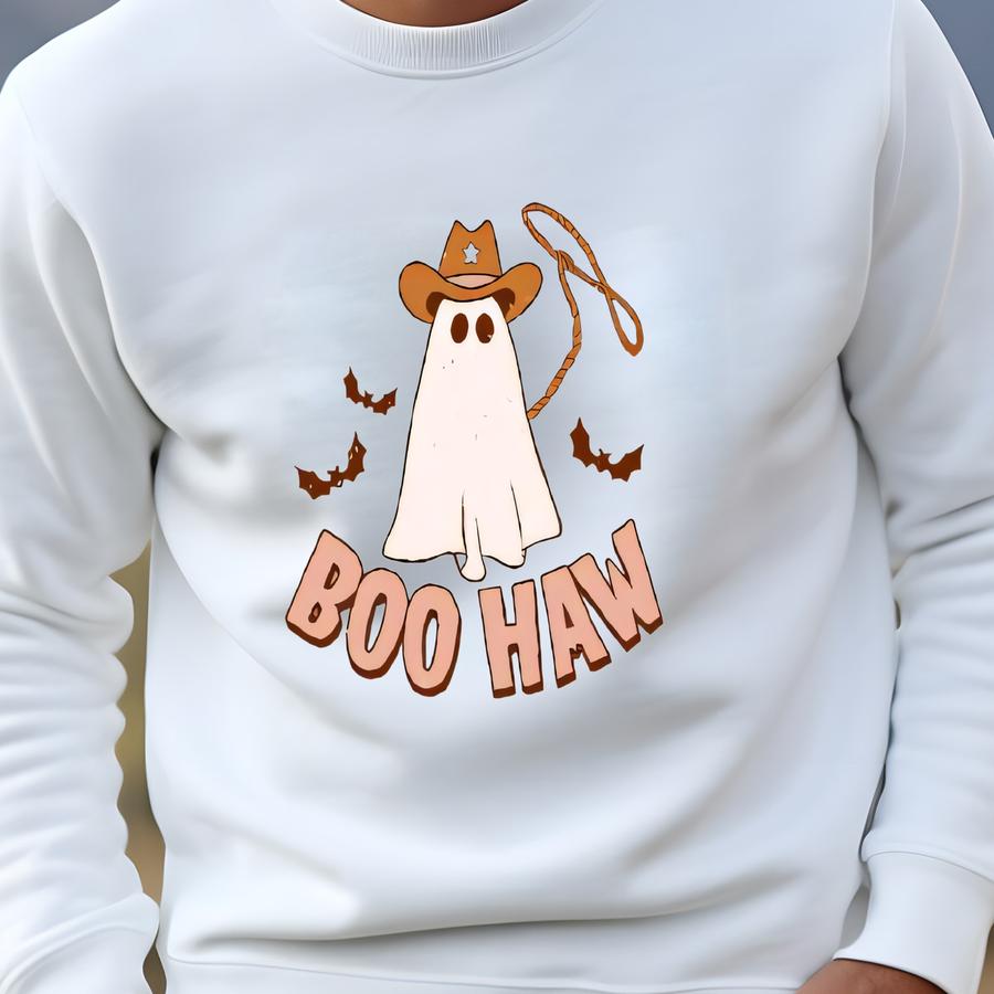 Halloween Boo Haw Western Sweatshirt, Cute Ghost Halloween Shirt, Retro Halloween Shirt, Country Cowgirl Halloween Shirt, Cowboy Ghost Shirt Sweatshirt