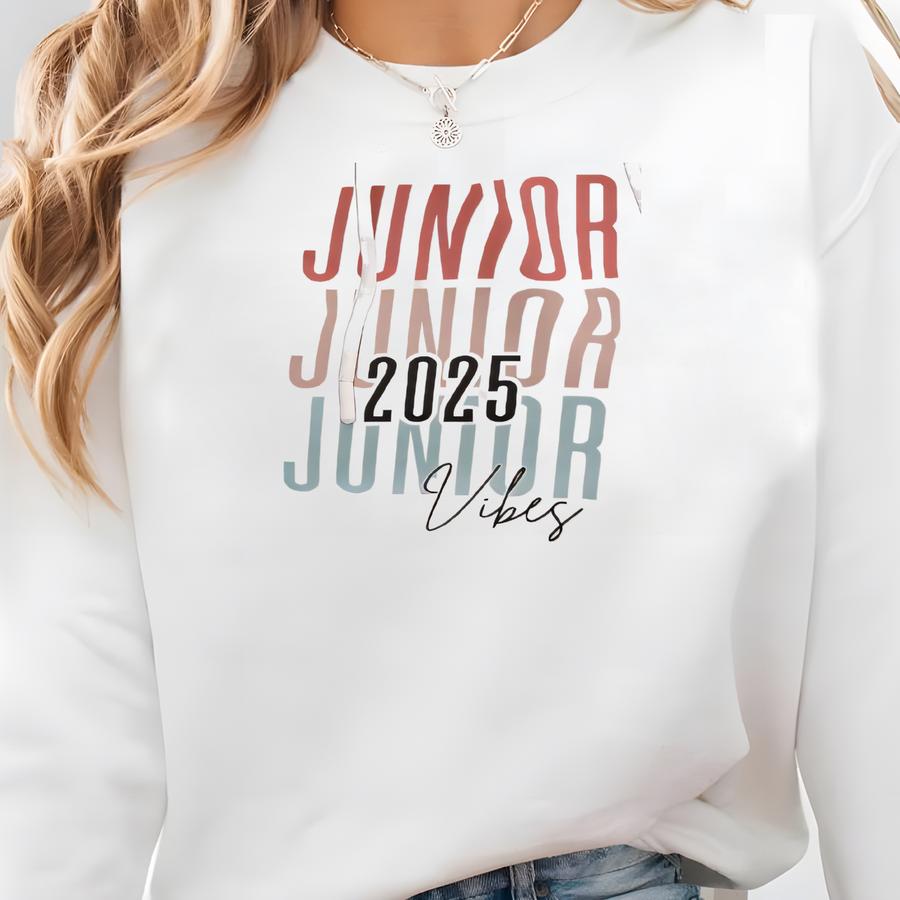 Junior 2025 Vibes Shirts For 11th Grade High School Students College Juniors - Back To School Wear Sweatshirt