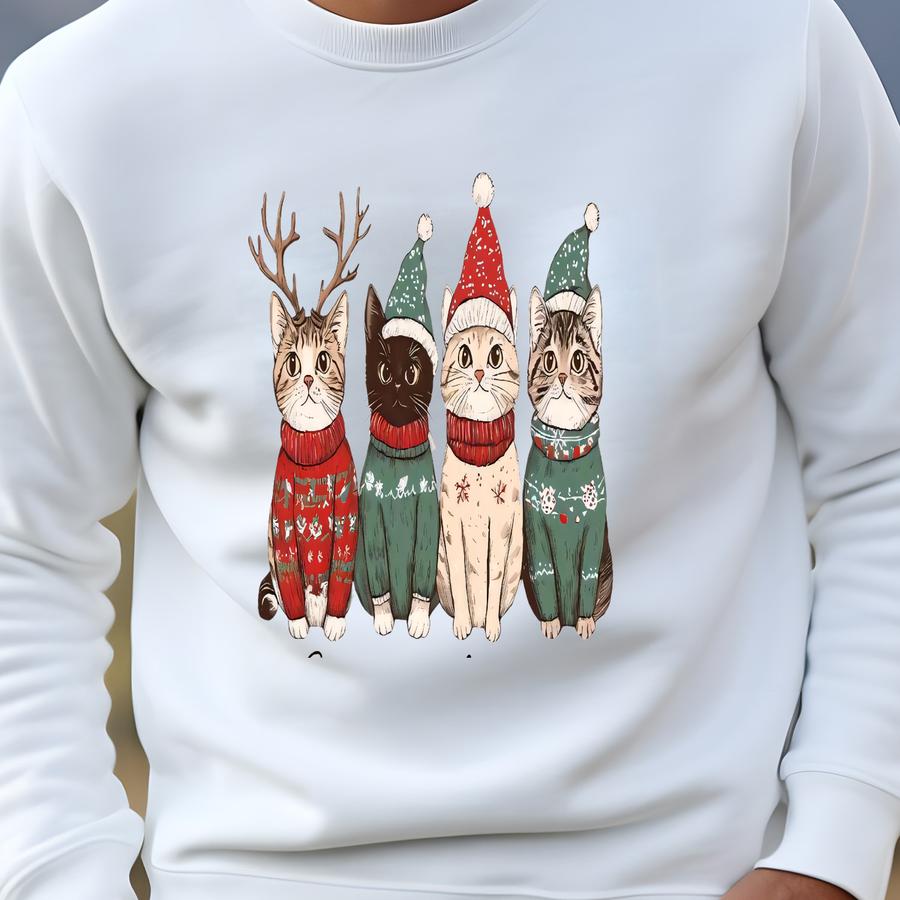 Meowy Christmas Shirt, Cat Christmas Sweatshirt, Cat Lover Xmas T-shirt, Christmas Cat Mom Sweater, Catmas Gift For New Year, Xmas Crewneck Sweatshirt