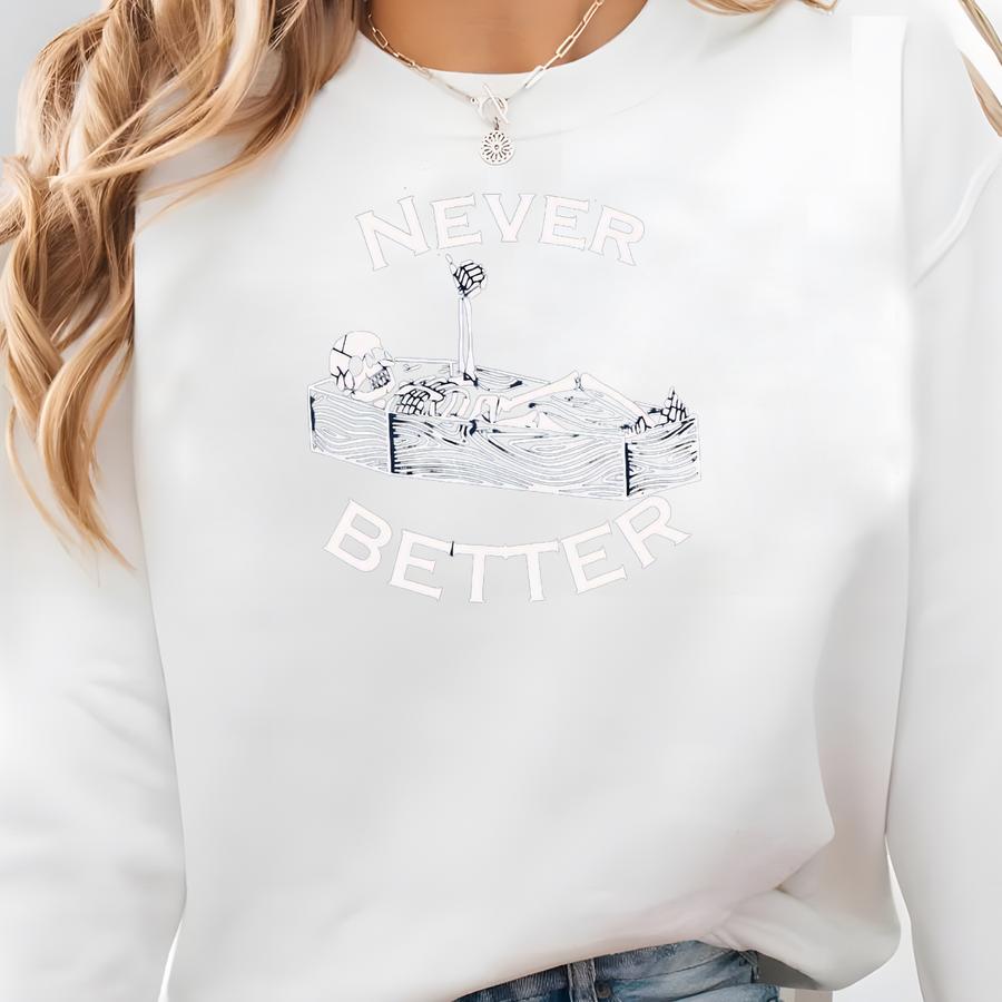 Never Better Skeleton Hoodie, Halloween Skull Skeleton In The Coffin Hoodie,funny Christmas Hoodie, Christmas Party Skeleton Christmas Shirt Sweatshirt