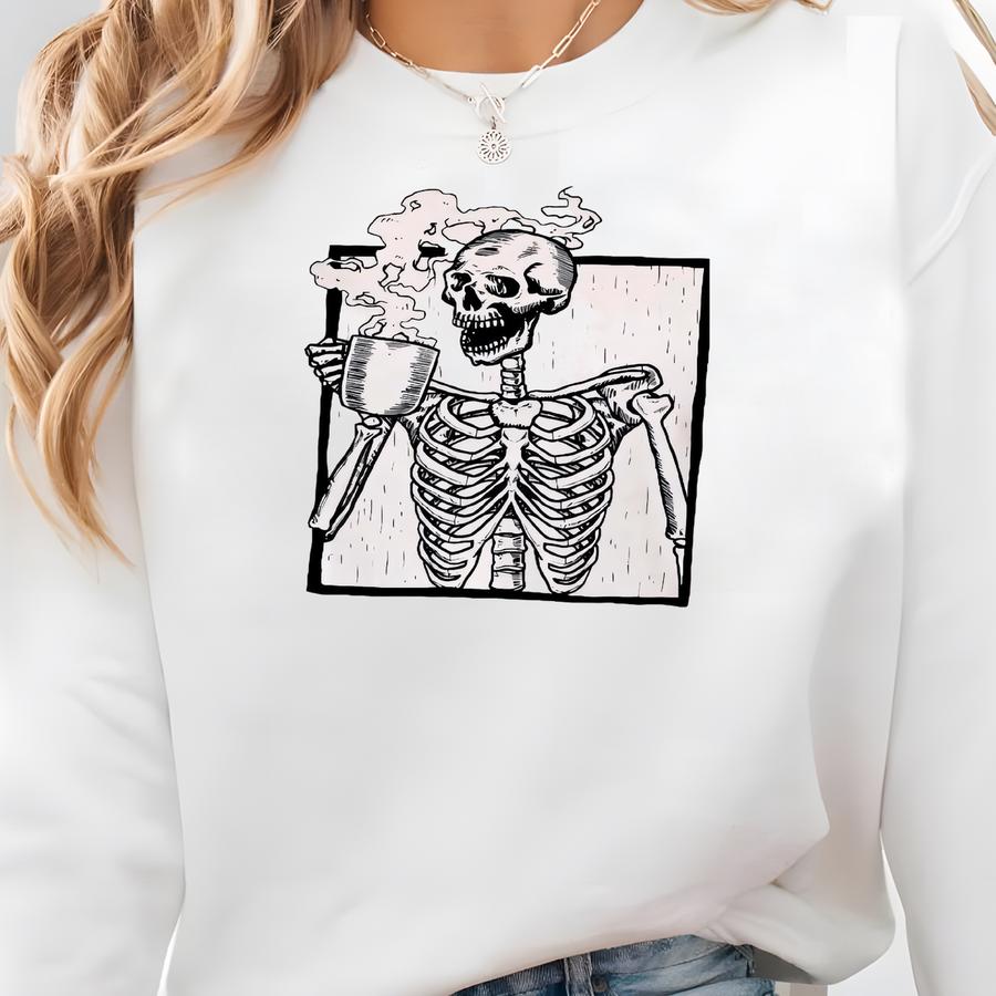 Skeleton Coffee Shirt, Halloween Skeleton Shirt, Fall Coffee Tshirt, Skeleton Tee, Halloween Coffee Shirt, Spooky Season Shirt, Fall Shirt Sweatshirt