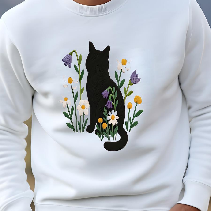 Black Cat Hoodie: Cottagecore Floral Sweatshirt Sweatshirt