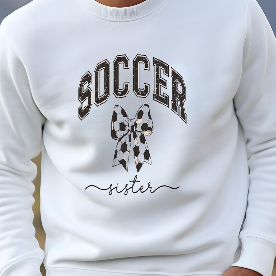 Fun Coquette Soccer Sister Sweatshirt Birthday Gift, Female Soccer Sister Sweater, Youth Size Soccer Sister Gift From Soccer Player Sweatshirt