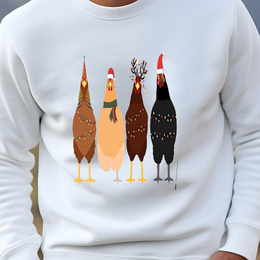 Сute Christmas Chickens Sweatshirt : Holiday Farm Sweater, Funny Xmas Outfit, Christmas Graphic Tee Sweatshirt