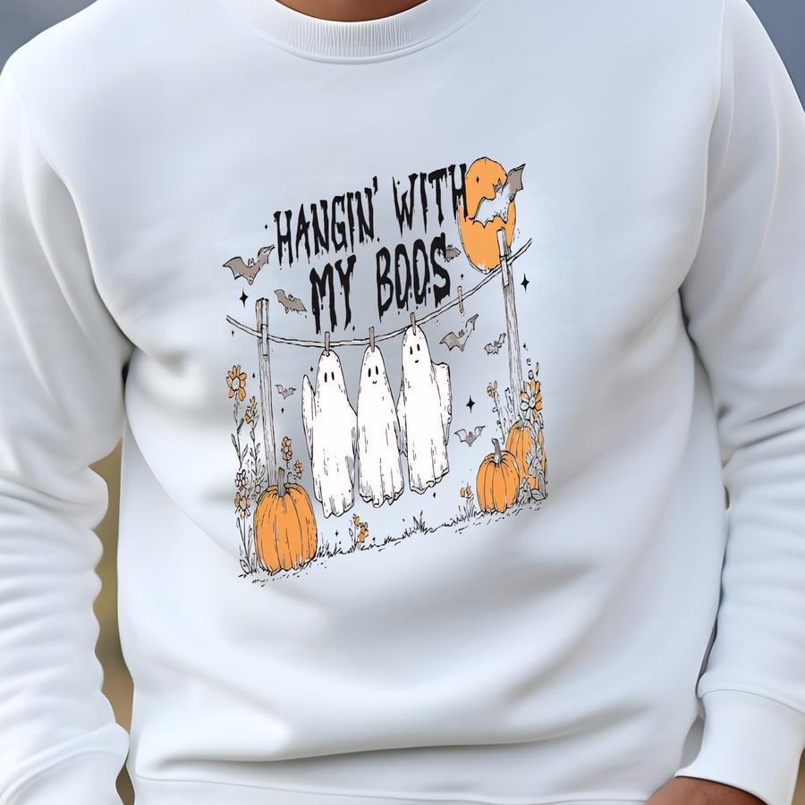 Funny Hanging Ghost Sweatshirt, Hangin' With My Boos, Halloween Crewneck, Cute Ghost Shirt, Gifts For Halloween, Funny Spooky Season Sweater Sweatshirt