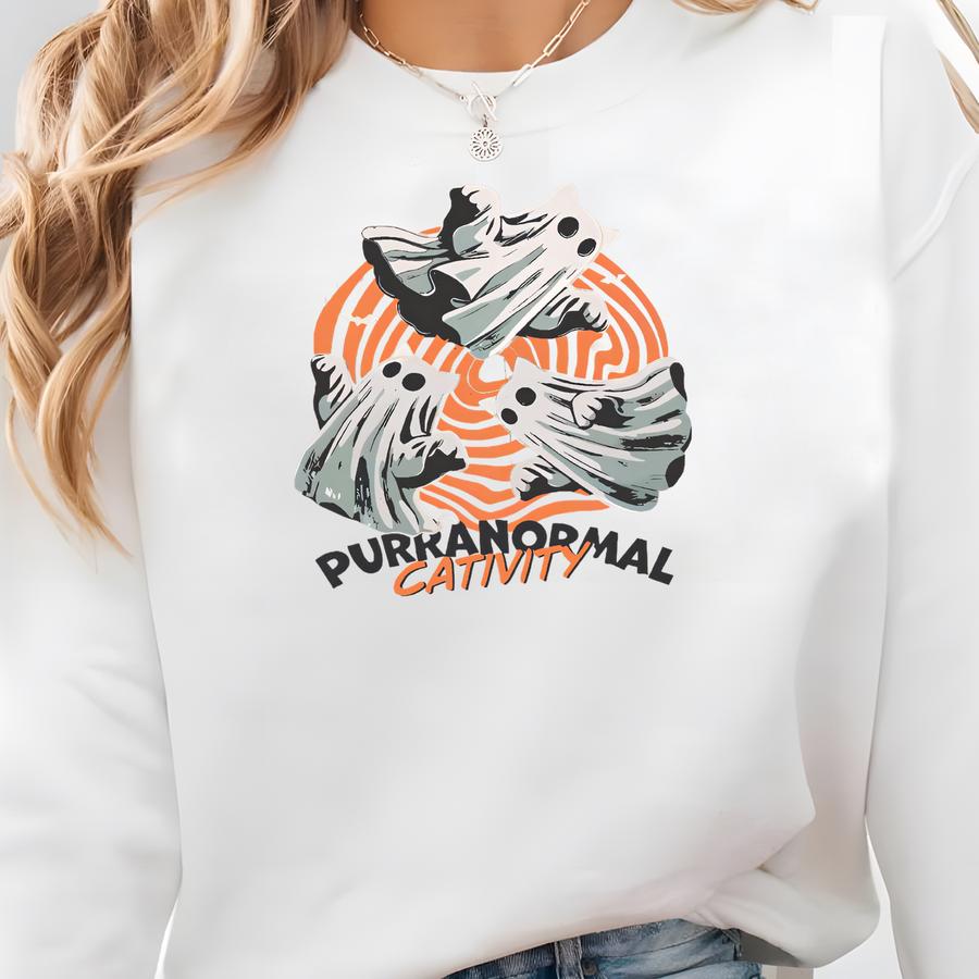 Halloween Cat Sweatshirt, Purranormal Cativity Sweater, Halloween Cat Mom Gift, Cat Ghosts Hoodie, Funny Cat Sweater, Cat Lover Crewneck Sweatshirt