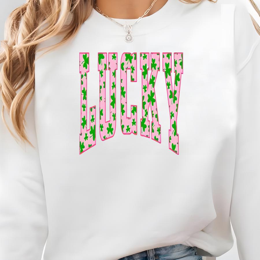 Lucky St. Patrick's Day Shamrock Sweatshirt, Cute St Pattys Day Sweatshirt, Pink/green Shamrocks Sweatshirt/ T-shirt Lucky Shamrock Shirt Sweatshirt