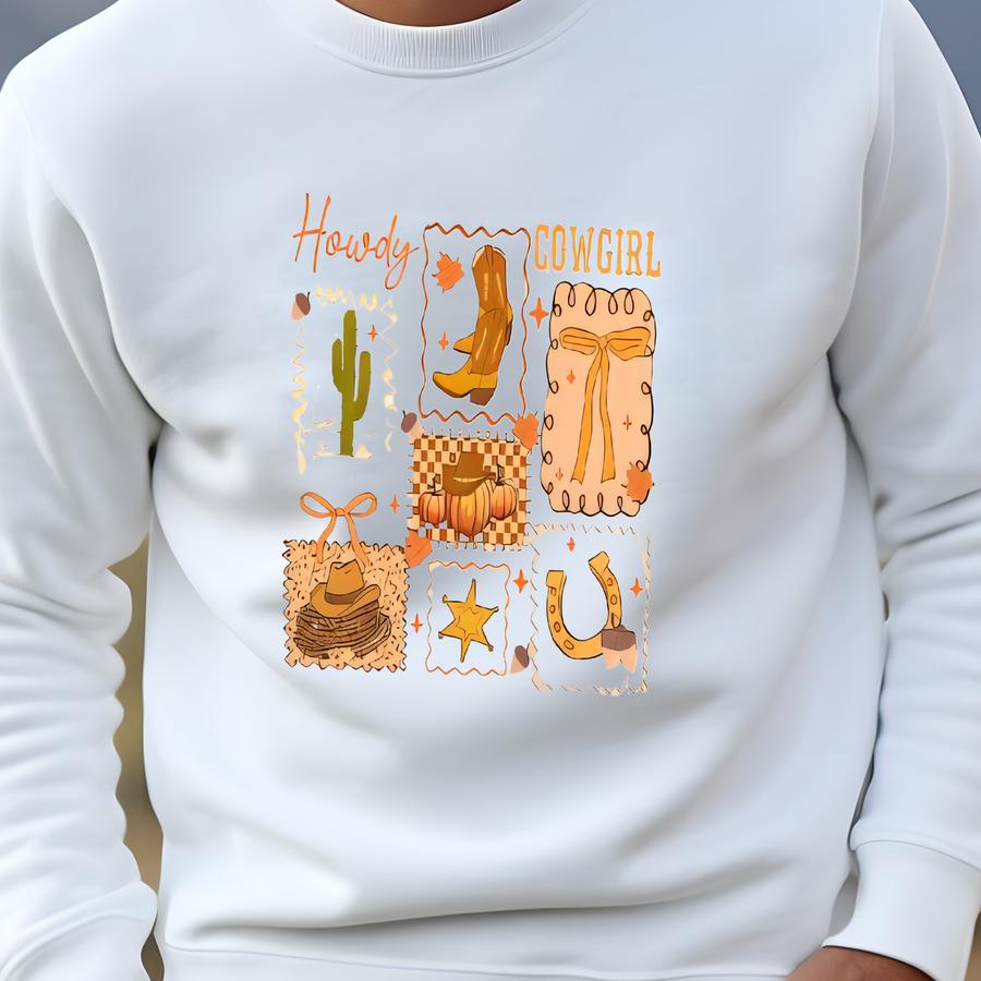 Howdy Cowgirl Fall Shirt - Western Pumpkin Sweatshirt - Autumn Rodeo Vibes Tee - Rustic Cowboy Boots Gift Sweatshirt