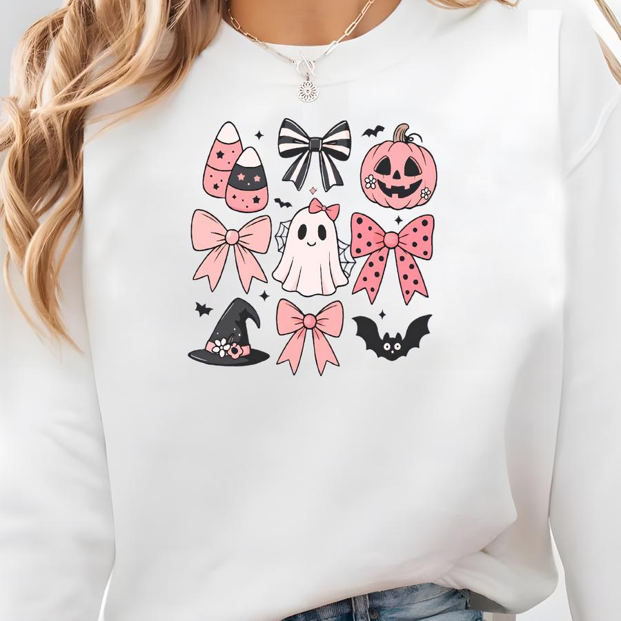 Halloween Bow Sweatshirt, Pumpkin Ghost Coquette Crewneck, Spooky Fall Youth Top Sweatshirt