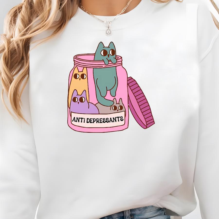 Anpressants Cats Sweatshirt, Funny Cat T-shirt, Mental Health Shirt, Funny Anxiety Hoodie, Cat Lover Crewneck, Cat Owner Graphic Tee Sweatshirt