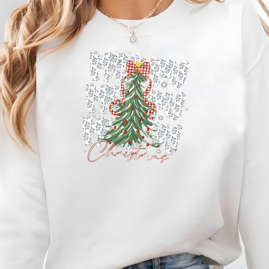 Cute Merry Christmas Tree Shirt, Merry Bright T-shirt, Festive Holiday Outfit, Xmas Graphic Tee Sweatshirt