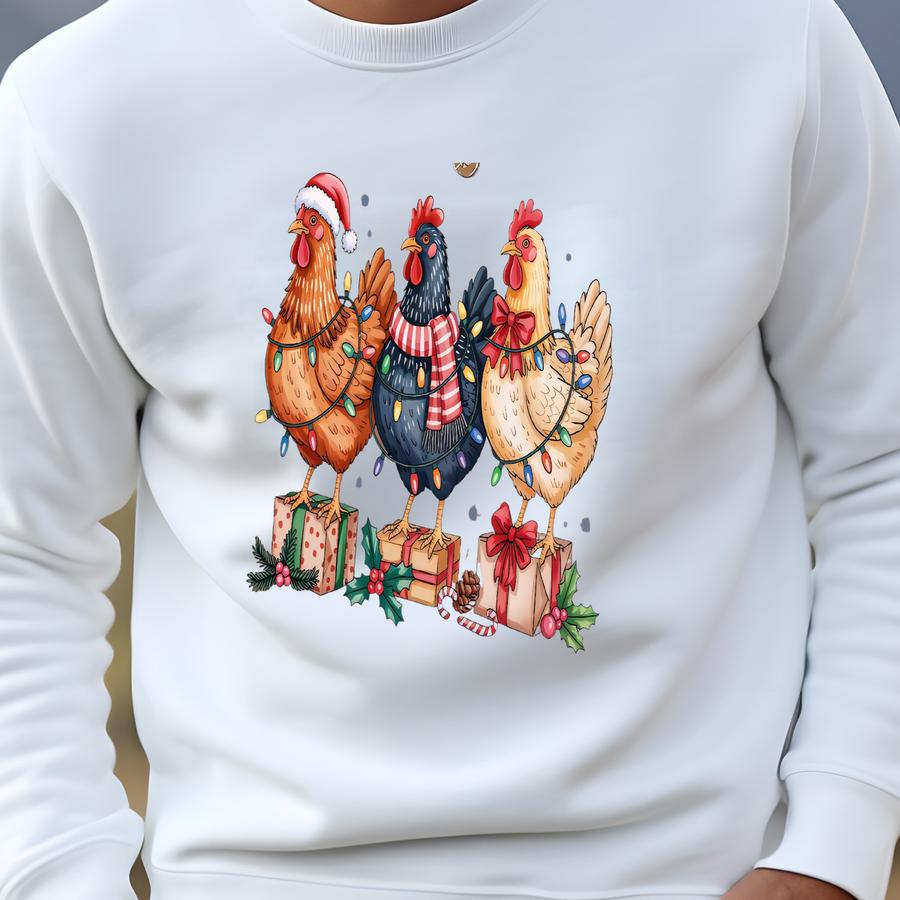 Cute Christmas Chickens Shirt, Funny Holiday Farm T-shirt, Family Xmas Top Tee Gift Sweatshirt