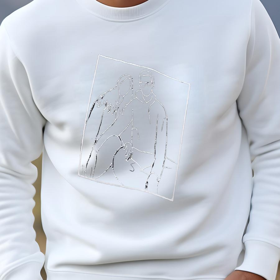 Christmas Gifts For Husband And Wife - Custom Hoodie With Picture Outline - Couple Portrait Sweatshirt - Matching Couple Gift Sweatshirt