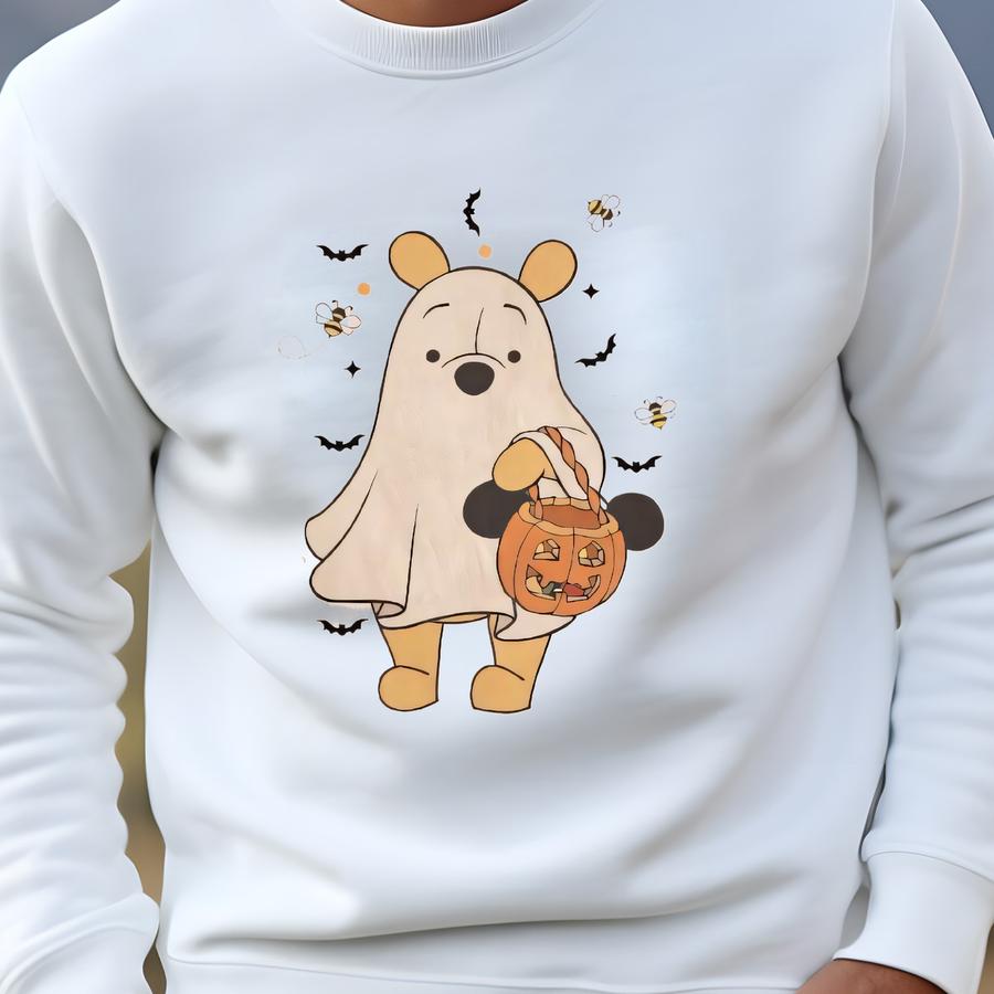 Pooh Bear Ghost Toddler Shirt - Retro Vintage Trick Or Treat Kids Tee - Spooky Season - Halloween Boy Girl Natural Tee Sweatshirt