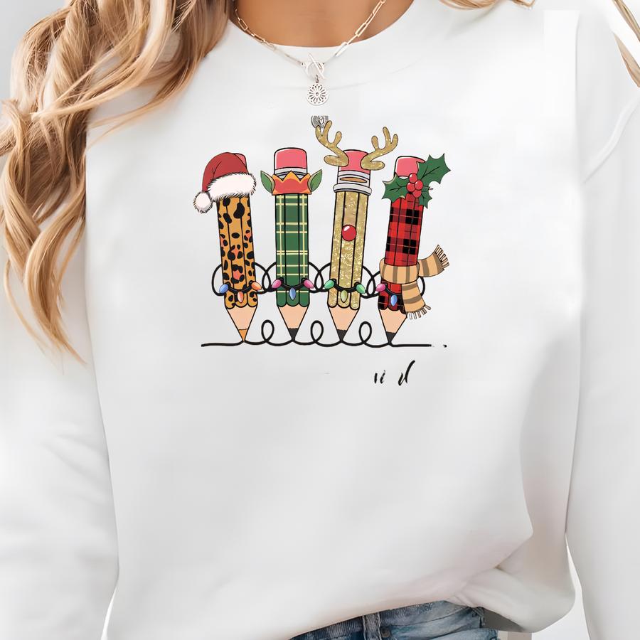 Christmas Teacher Pencil Png - Merry Teachmas Shirt Design (digital Download) Sweatshirt