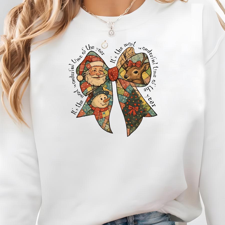 Holiday Bow Graphic Hoodie, Coquette Girl Christmas Outfit, Bow Lover Christmas Sweatshirt, It's The Most Wonderful Time Of The Year Shirt Sweatshirt