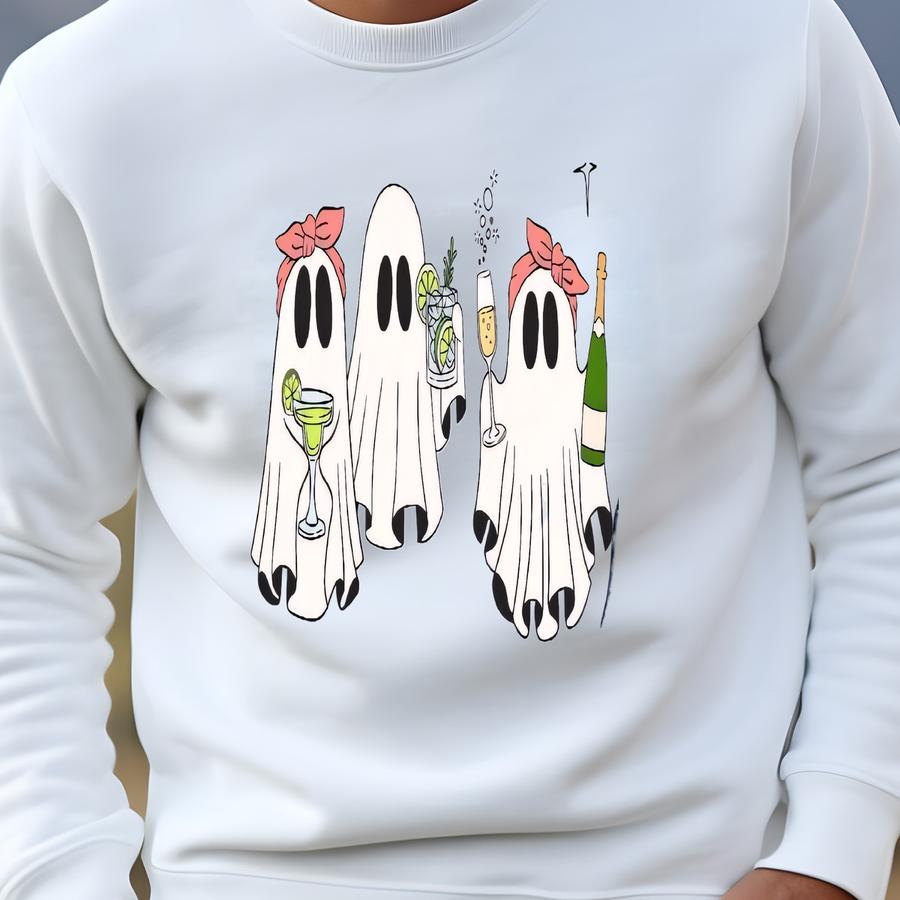 Cute Tipsy Ghost Shirt, Halloween Tee, 3 Sheets To The Wind Funny Drunken Ghosts, Best Best Friends Gift For Halloween Party Costume Sweatshirt