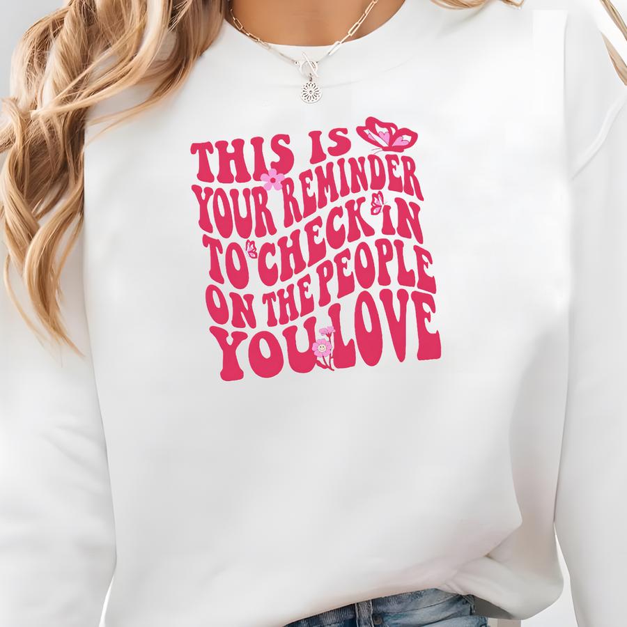 Reminder To Check In On The People You Love Hoodie, Mental Health Awareness Sweatshirt, Suicide Prevention Sweatshirt, Hoody, Vsco Sweatshirt