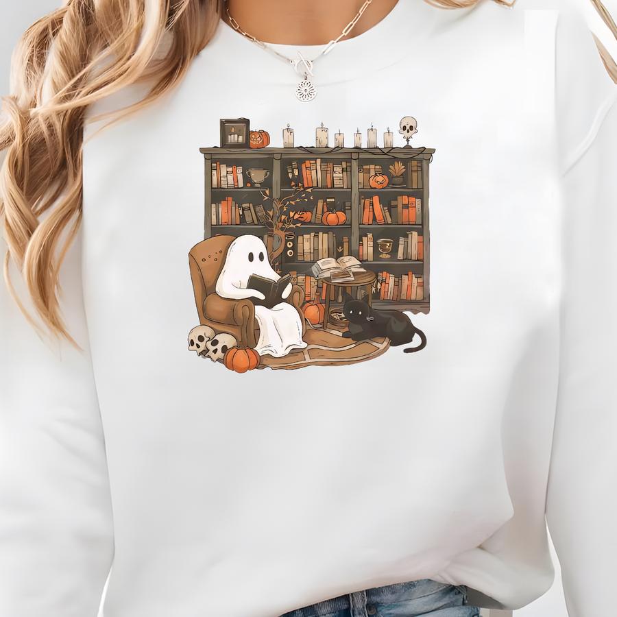 Retro Ghost Reading Books Sweatshirt, Librarian Ghost Halloween, Halloween Teacher Sweatshirt, Halloween Sweater, Teacher Gift, Boo School Sweatshirt