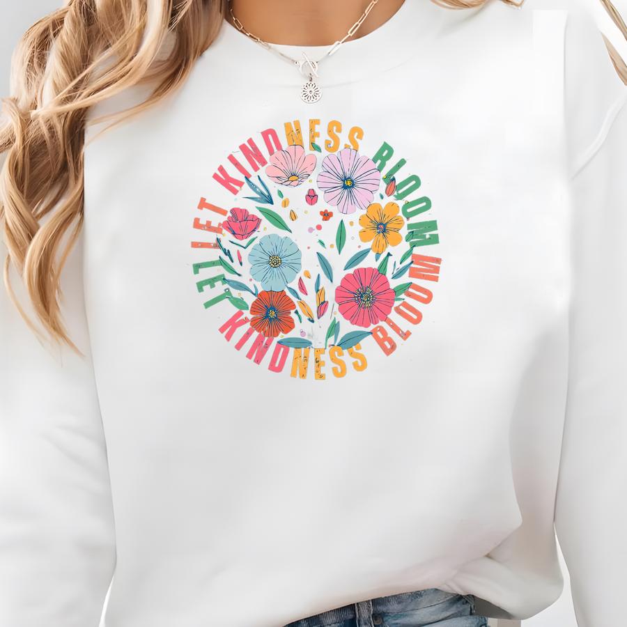 Let Kindness Bloom Sweatshirts, Choose Kindness Outfits, Be Kind Teacher Shirts, Inspiration Crewnecks, Floral Mental Health Shirt, Mom Gift Sweatshirt