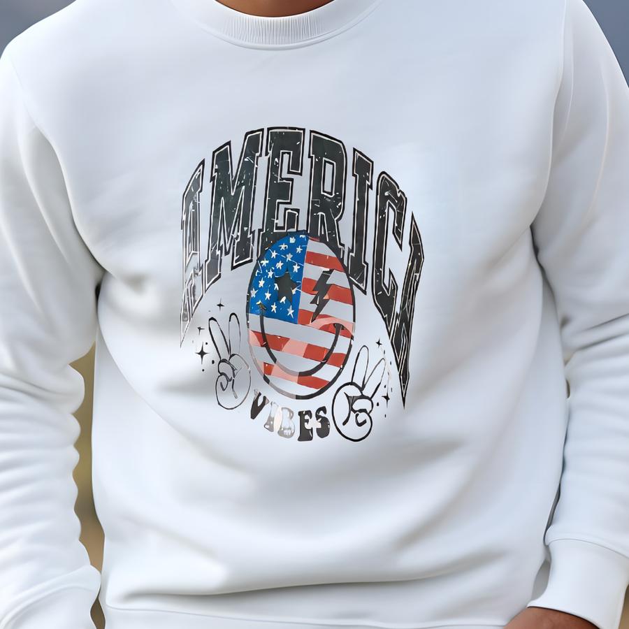 America Vibes Retro - 4th Of July - Graphic Tee - Women’s Oversized Tee - T-shirt - Teen Gift - Summer Vibes - Usa - Patriotic Sweatshirt
