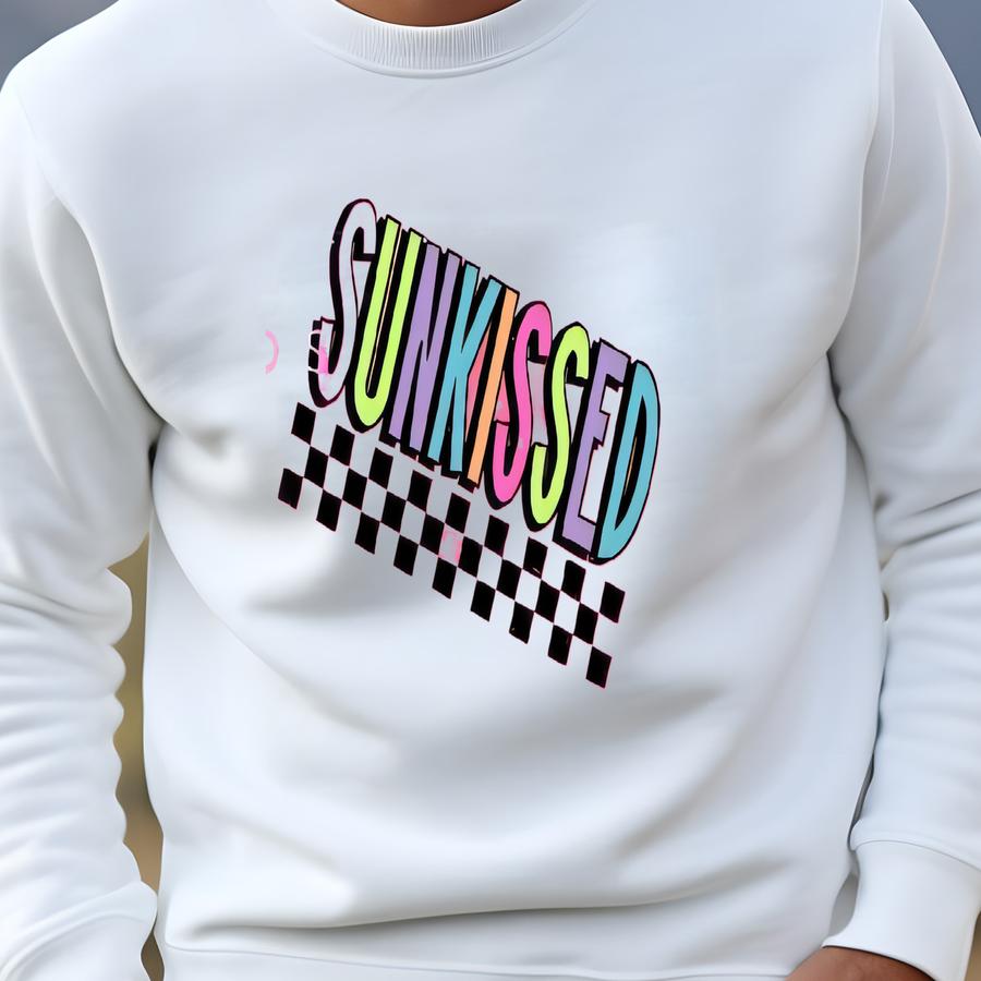 Checkered Sunkissed Tshirt - Beach Summer Lake Cruise Youth Bright River Gift Youth Sunny Kids Preppy Pink Sunshine Sweatshirt