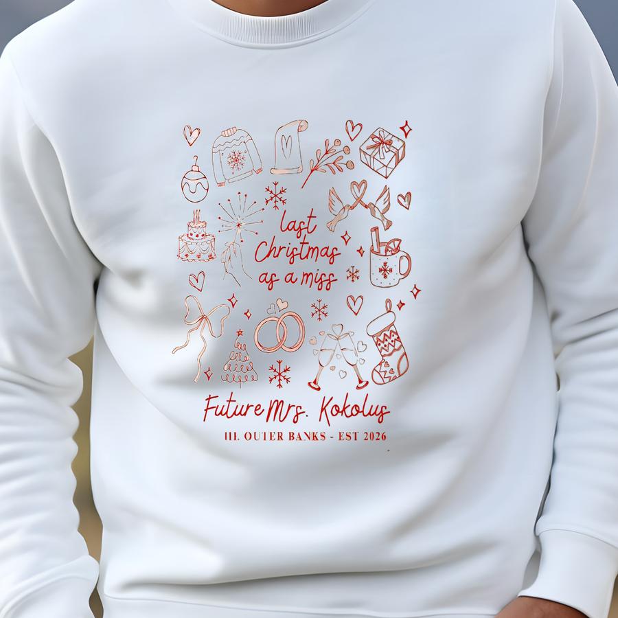 Last Christmas As A Miss Custom Mugs Christmas Bride Coffee Cup Gift Custom Future Mrs Ceramic Mug Christmas Engaged Gifts For Bride To Be Sweatshirt