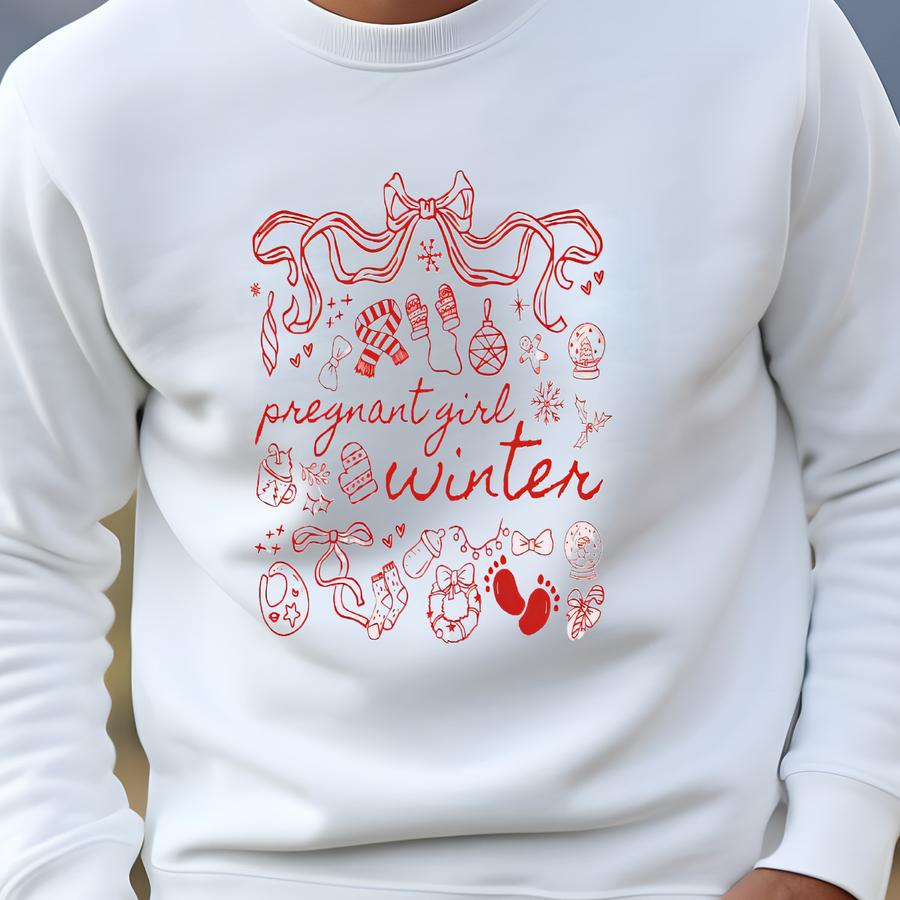 ® Pregnant Girl Winter Shirt, Snowflake Baby Announcement Tee, Pregnancy Reveal Outfit, Expecting Mama Winter Gift Top Sweatshirt