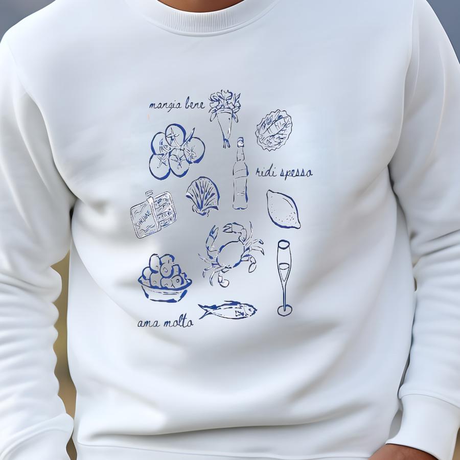 Mangia Bene, Ridi Spesso, Ama Molto Italian Icons Crewneck Gemma Sweatshirt | Al Aesthetic | Mediterranean | Travel | G18dtgic Sweatshirt