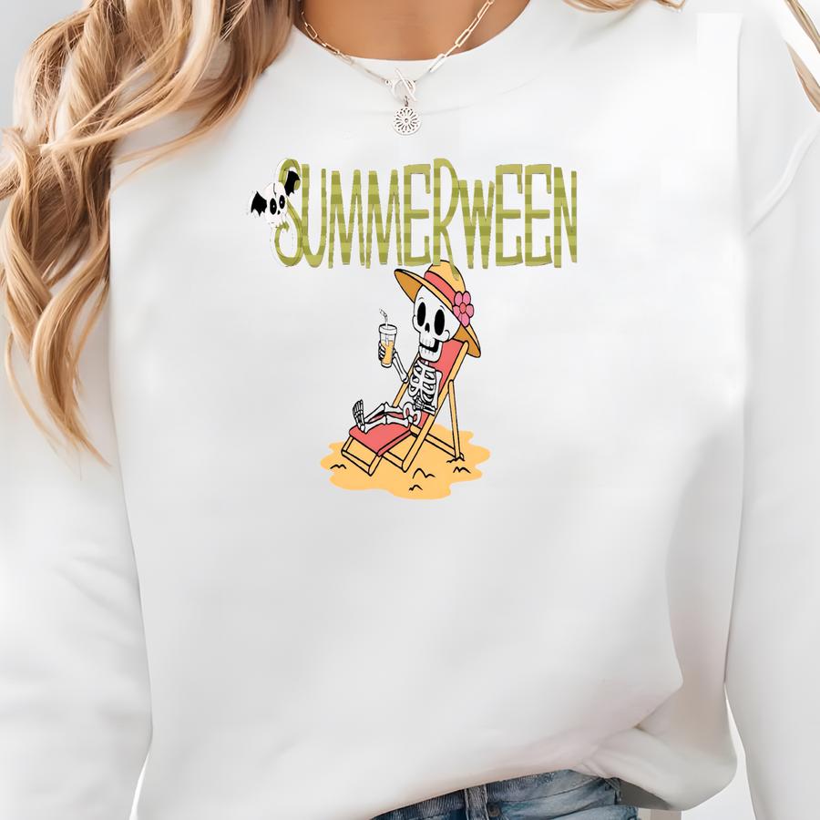 Summerween Skeleton Shirt, Spooky Summer Tee, Year Round Halloween Summer Gifts For Best Friend Sweatshirt