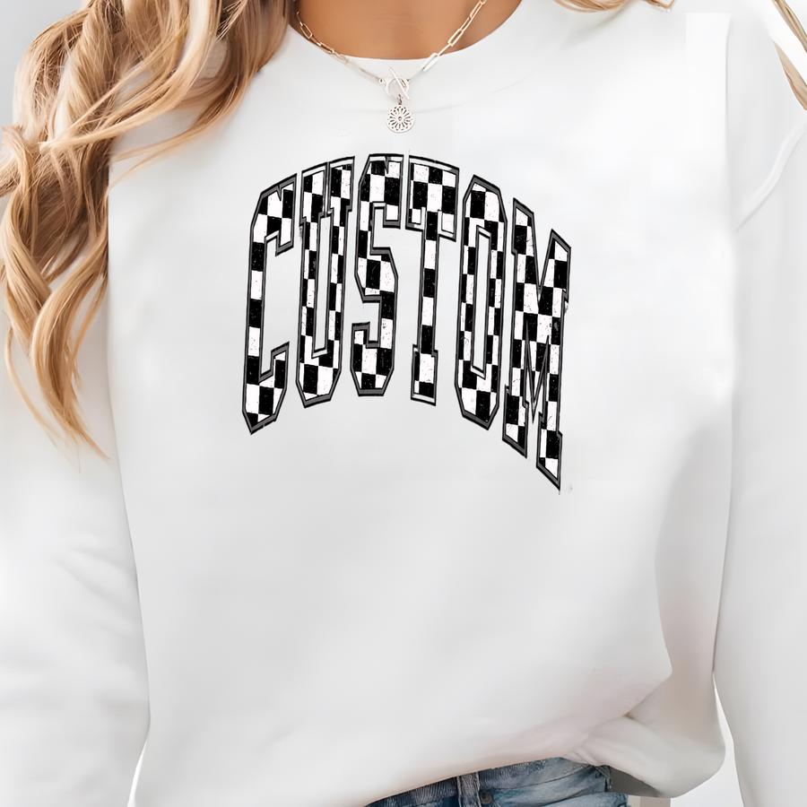 ® Custom Name Shirt – Retro Checkered Text Cotton Tee Sweatshirt